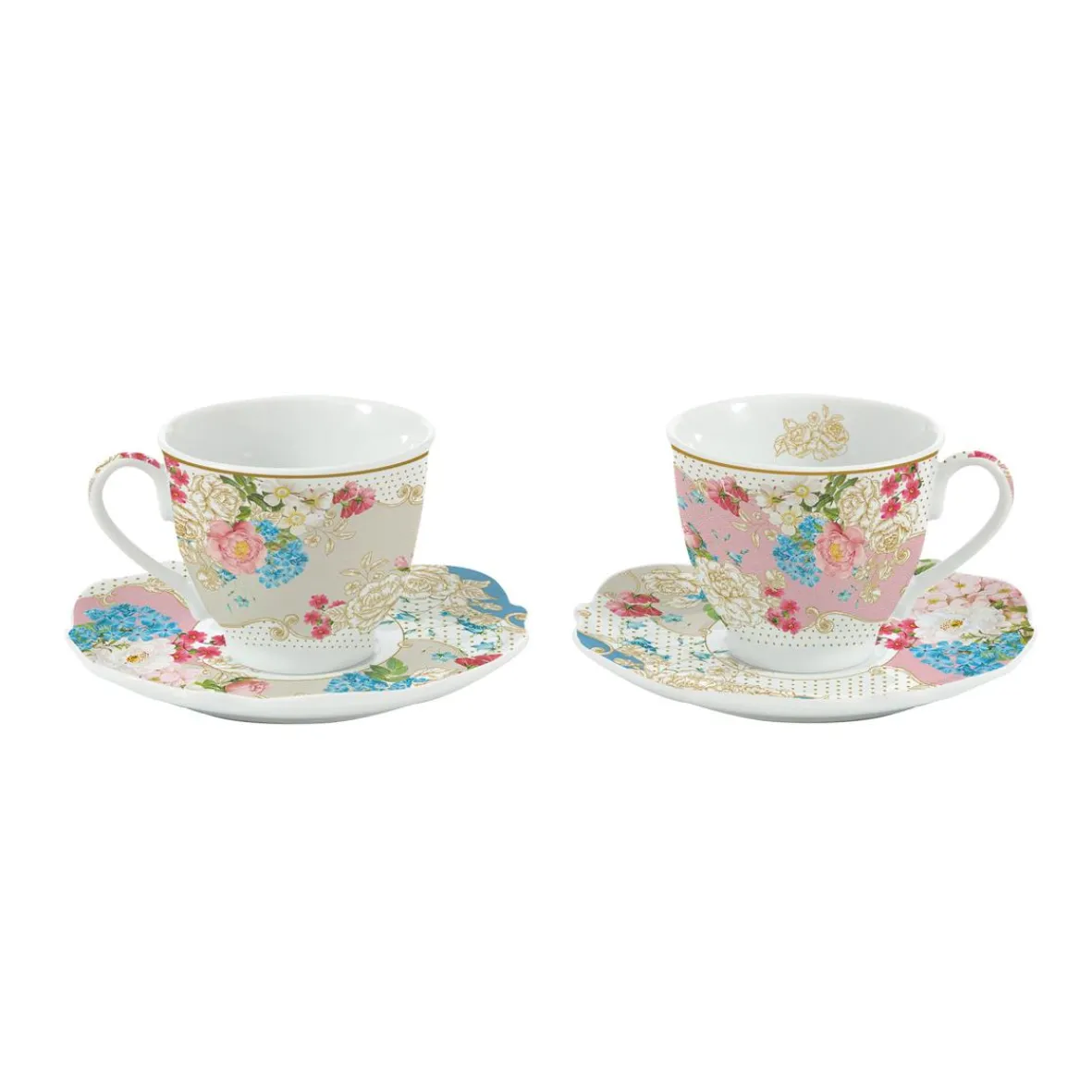 Coffret de 2 tasses avec soucoupes en porcelaine, 225 ml chacune, dans une boîte cadeau PRINTEMP