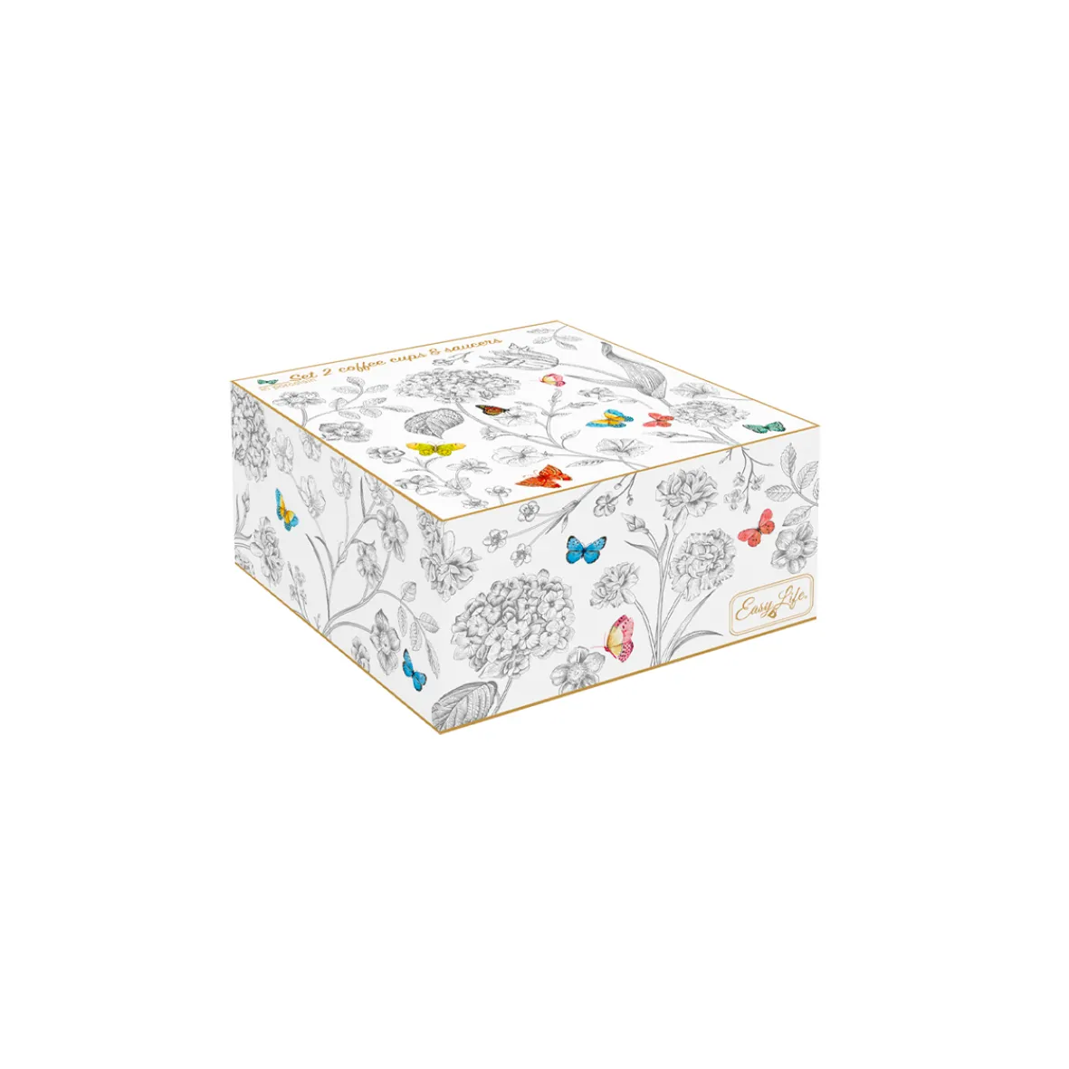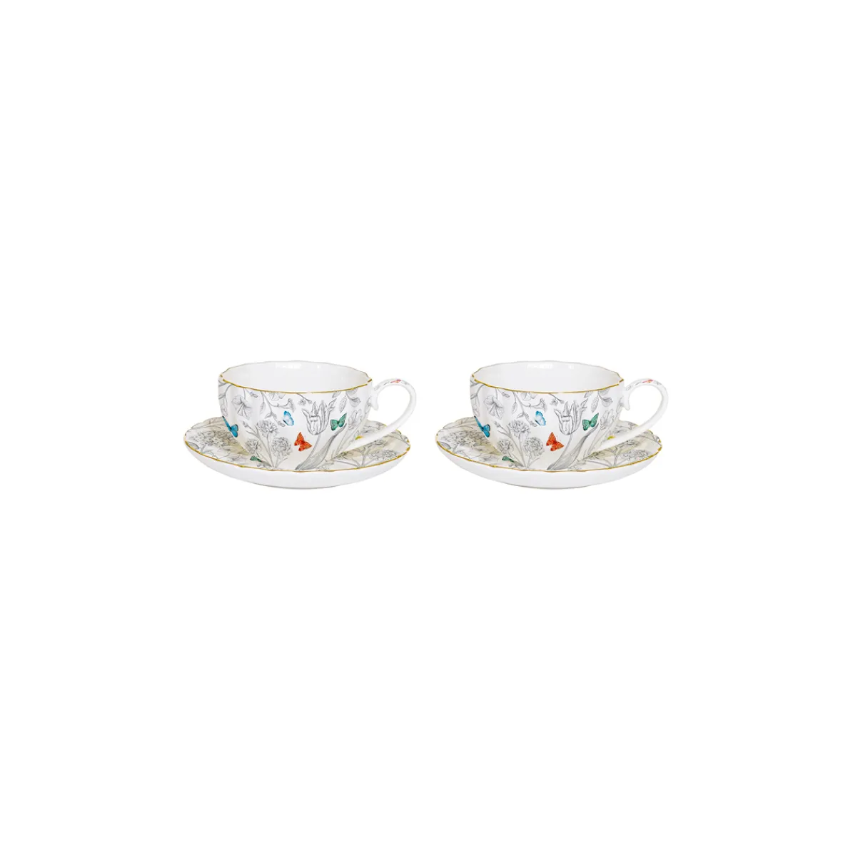 Ensemble de 2 tasses à café avec soucoupes FLEURS ET PAPILLONS