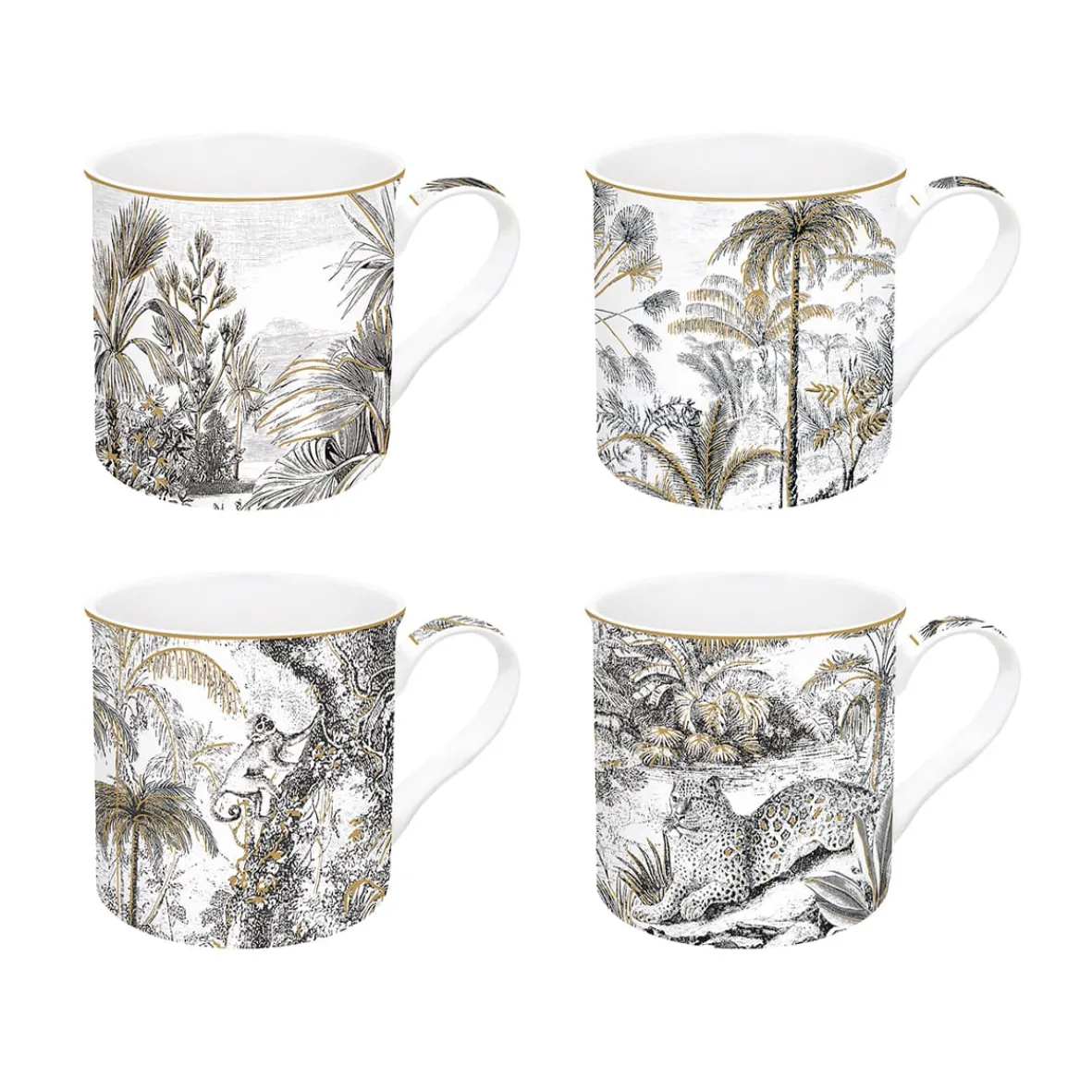 Ensemble de 4 tasses assorties de 300 ml en porcelaine fine china RETRO JUNGLE