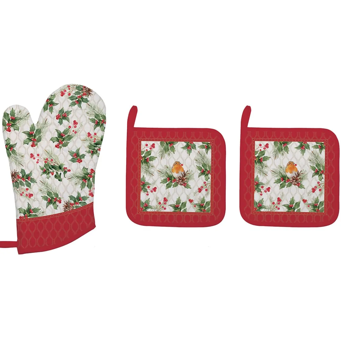 Ensemble textile de cuisine – 1 gant et 2 maniques CHRISTMAS BERRIES