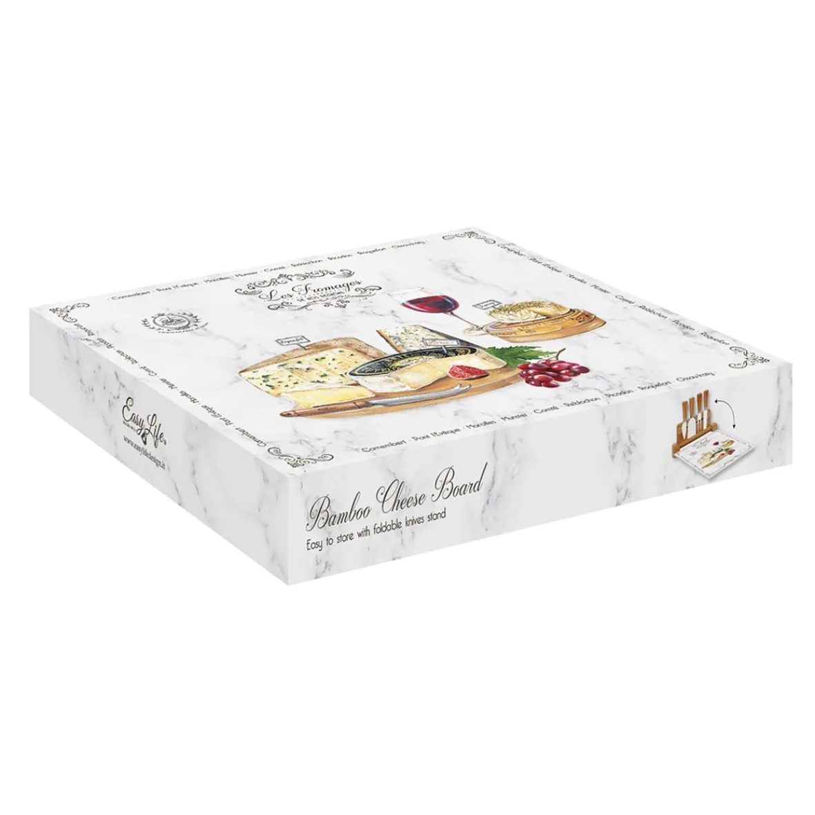 Planche à fromage avec plateau en verre et 4 couteaux à fromage LES FROMAGES