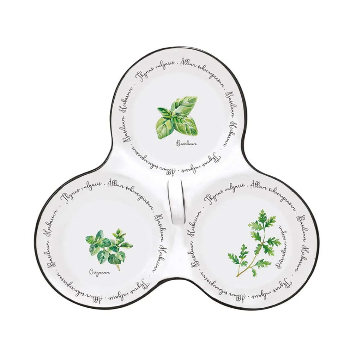 Plateau apéritif 20,5×17 cm avec 3 bols en porcelaine HERBARIUM