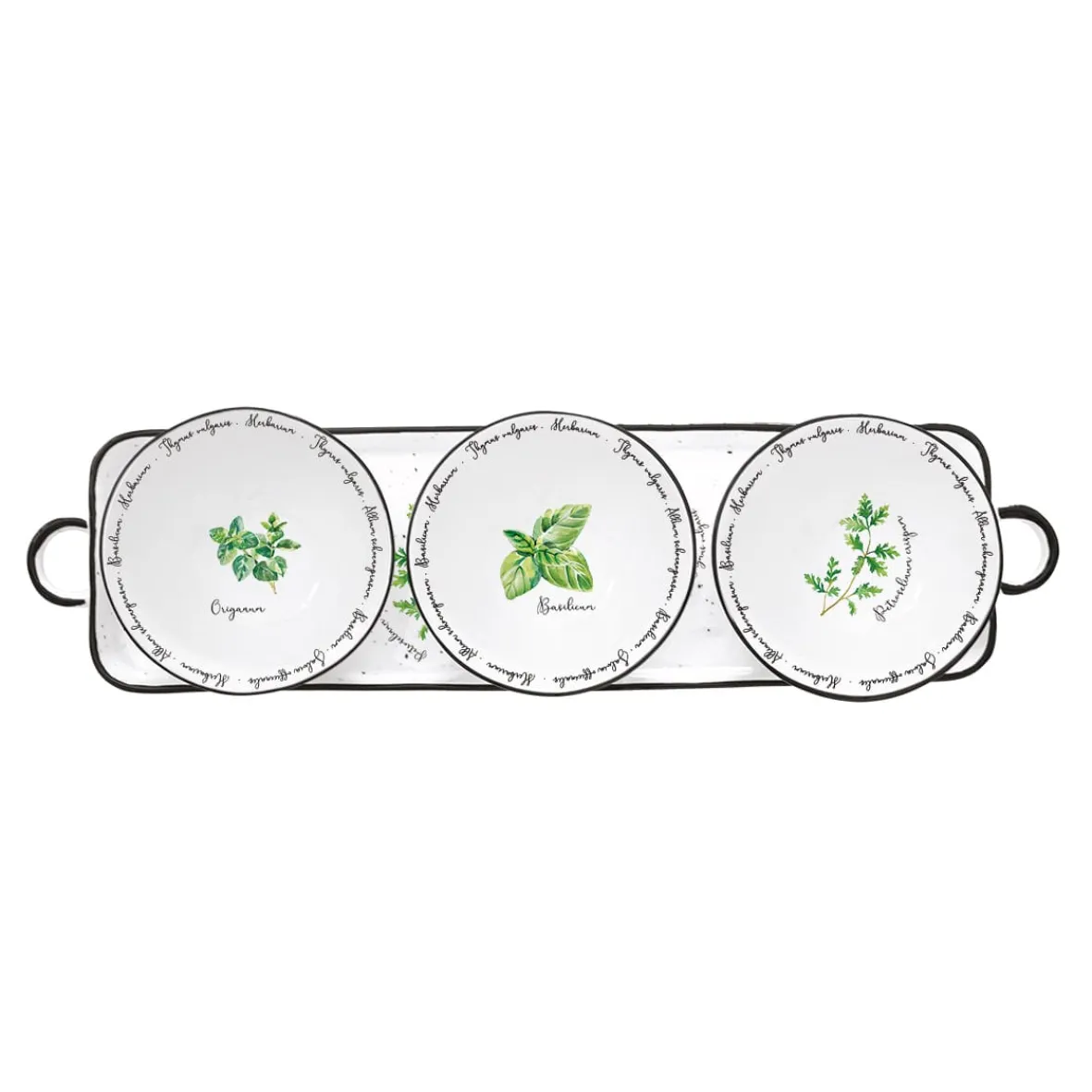 Plateau apéritif 37×10 cm avec 3 bols en porcelaine Ø 10 cm HERBARIUM