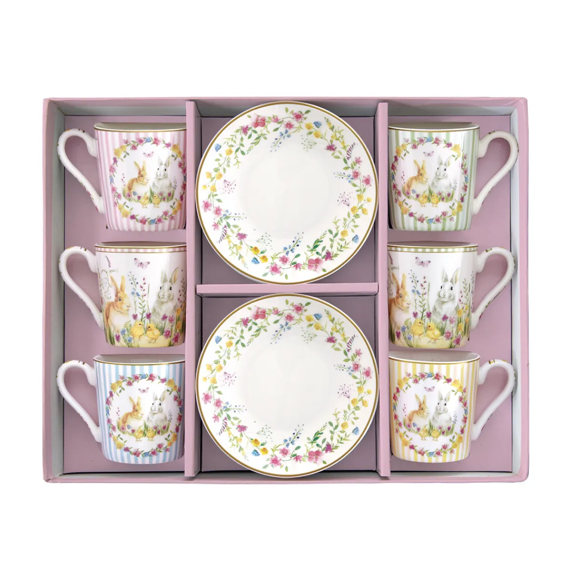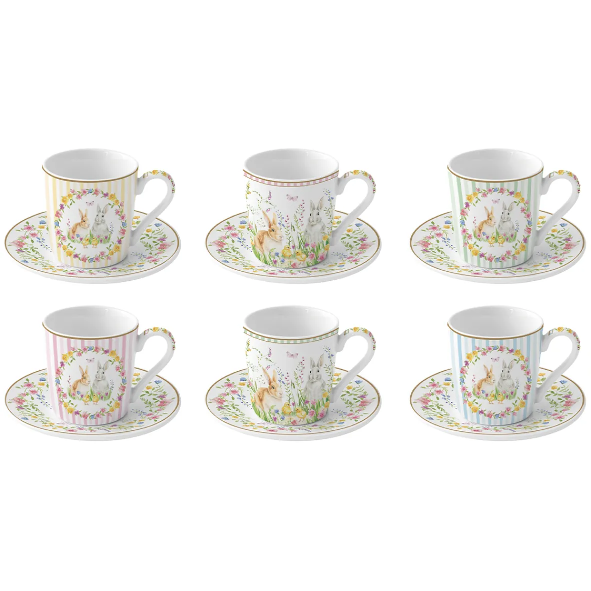Set 6 tasses à café avec soucoupe HAPPY EASTER