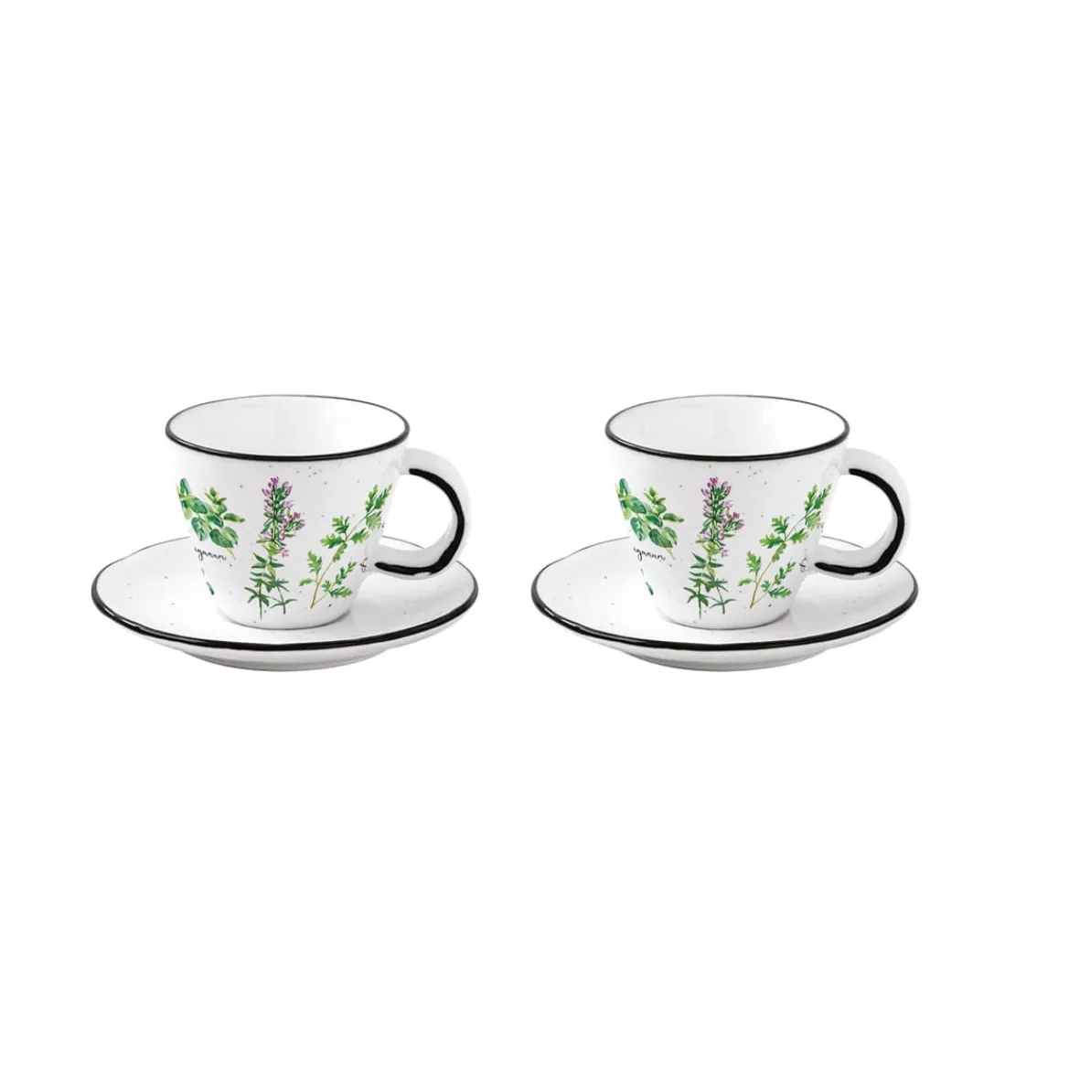 Ensemble de 2 tasses à café avec soucoupes, 120 ml en porcelaine HERBARIUM