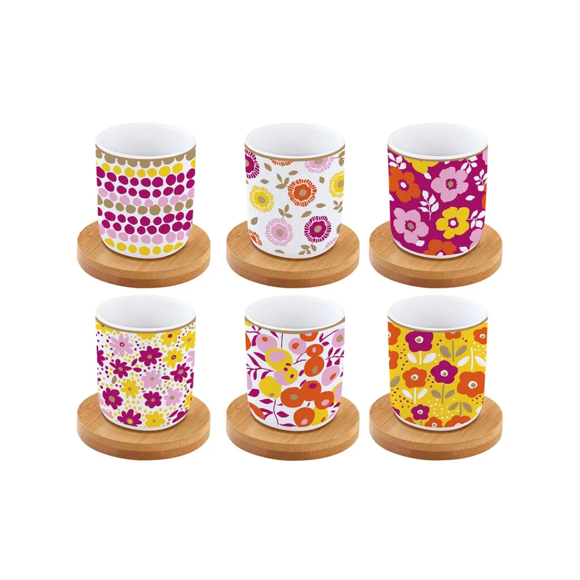 Ensemble de 6 tasses à espresso avec soucoupes , 110 ml En Bambou FLOWER POWER YELLOW
