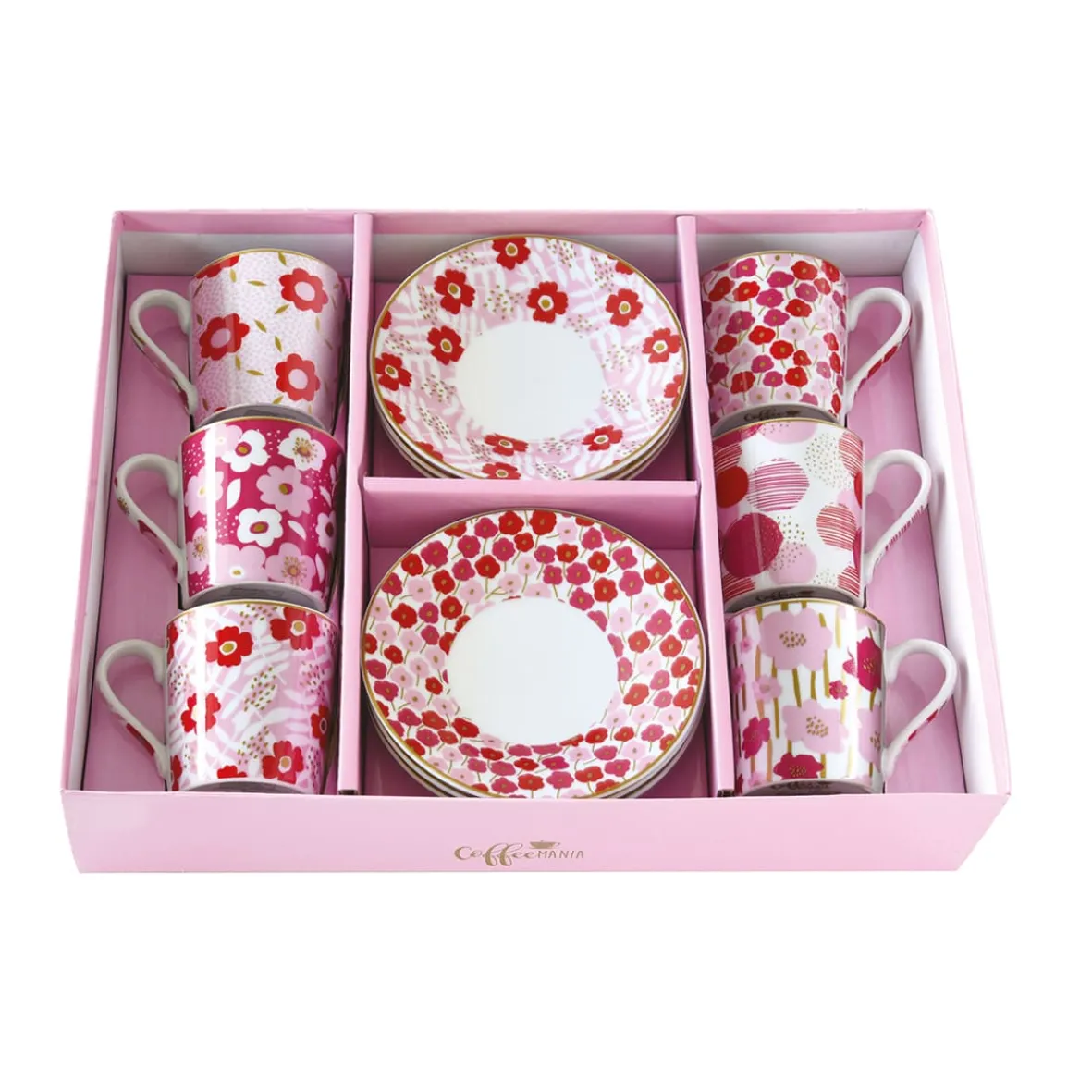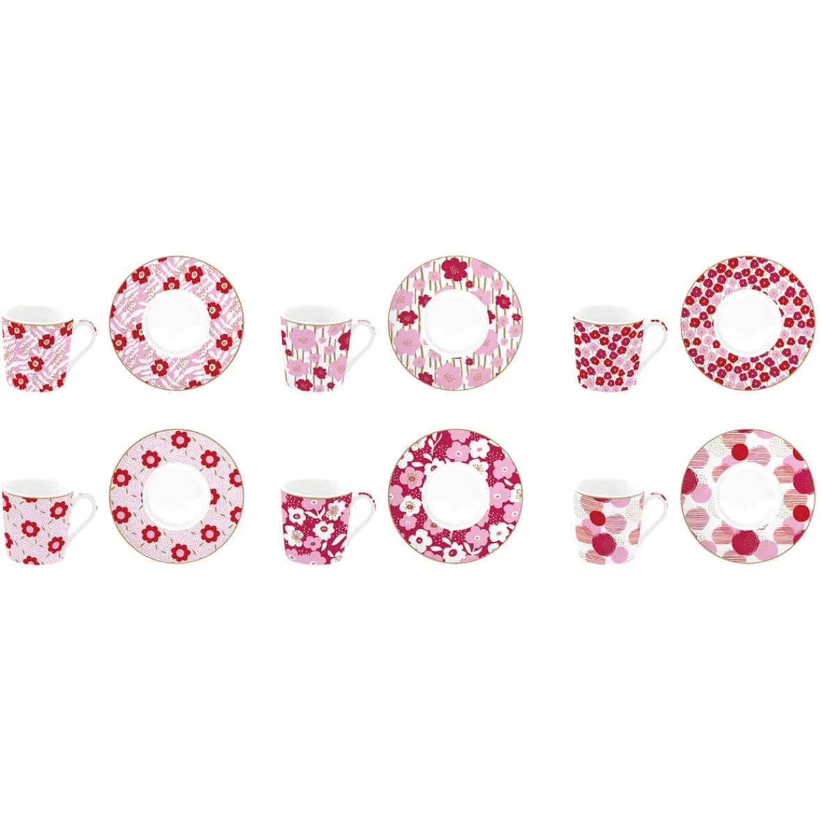 Ensemble de 6 tasses à espresso avec soucoupes , 110 ml FLOWER POWER PINK