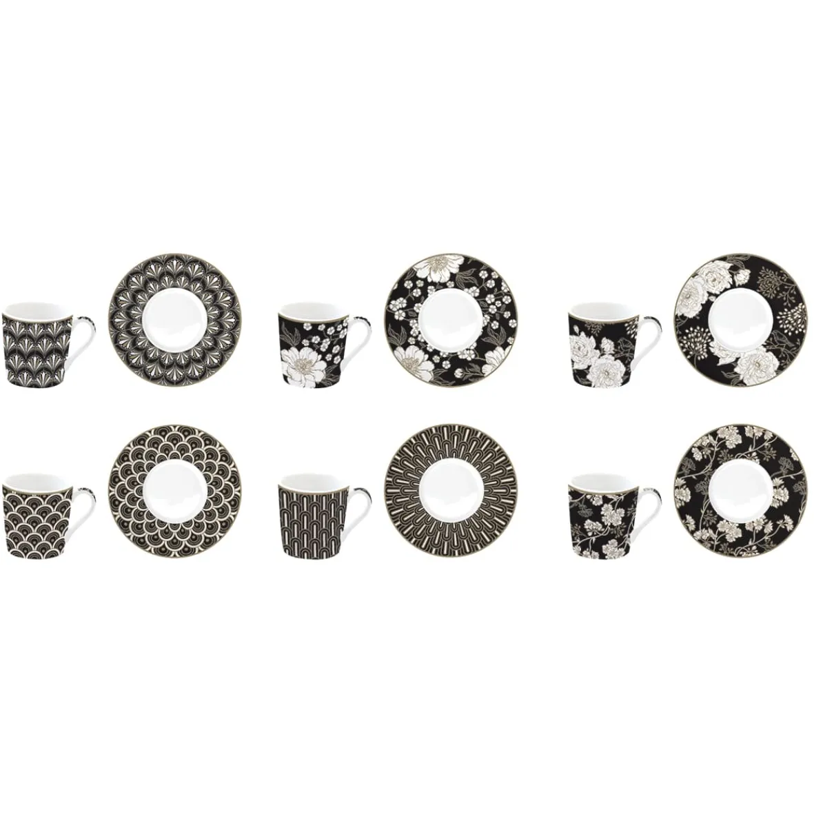 Ensemble de 6 tasses à espresso avec soucoupes ART DECO & FLOWERS