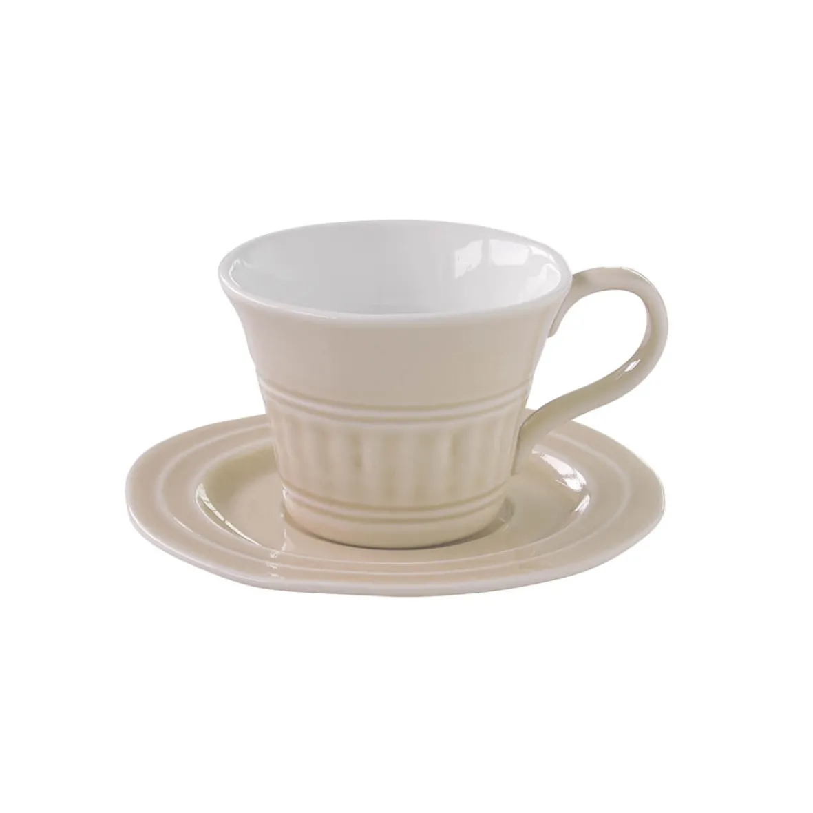 Ensemble de 6 tasses à petit-déjeuner de 400 ml avec soucoupes en porcelaine BEIGE