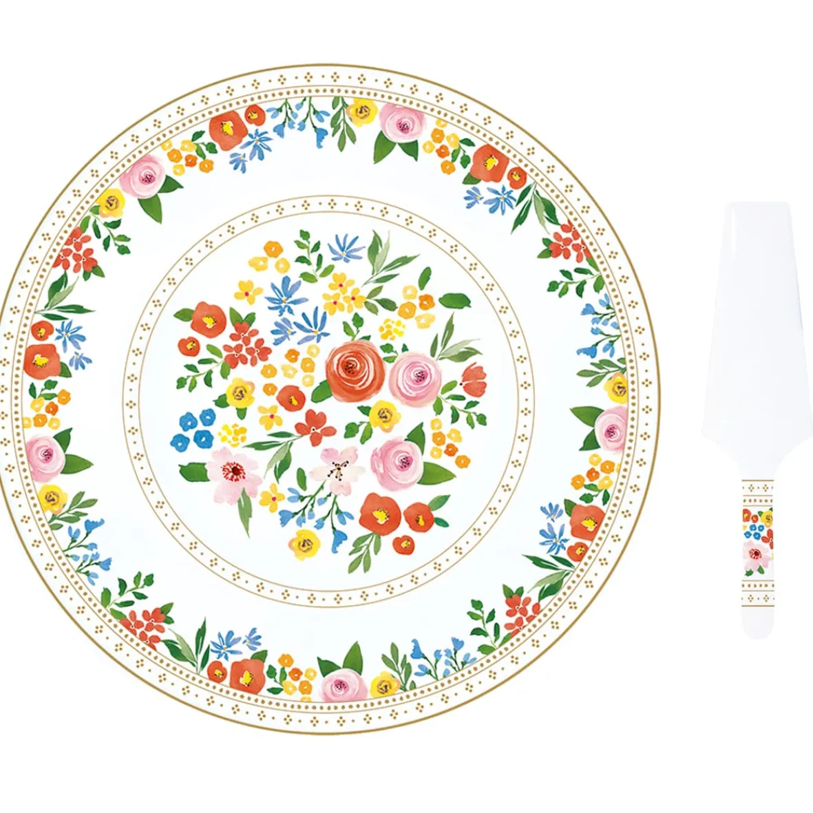 Plat à gâteau avec pelle BOHO FLOWERS