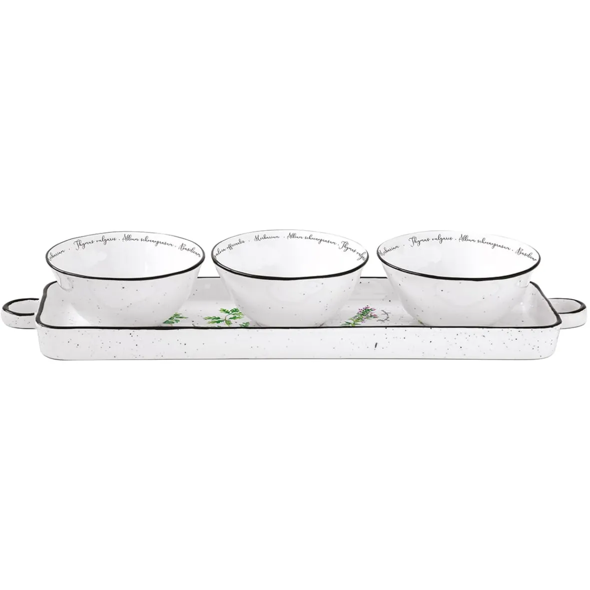 Plateau apéritif 37×10 cm avec 3 bols en porcelaine Ø 10 cm HERBARIUM