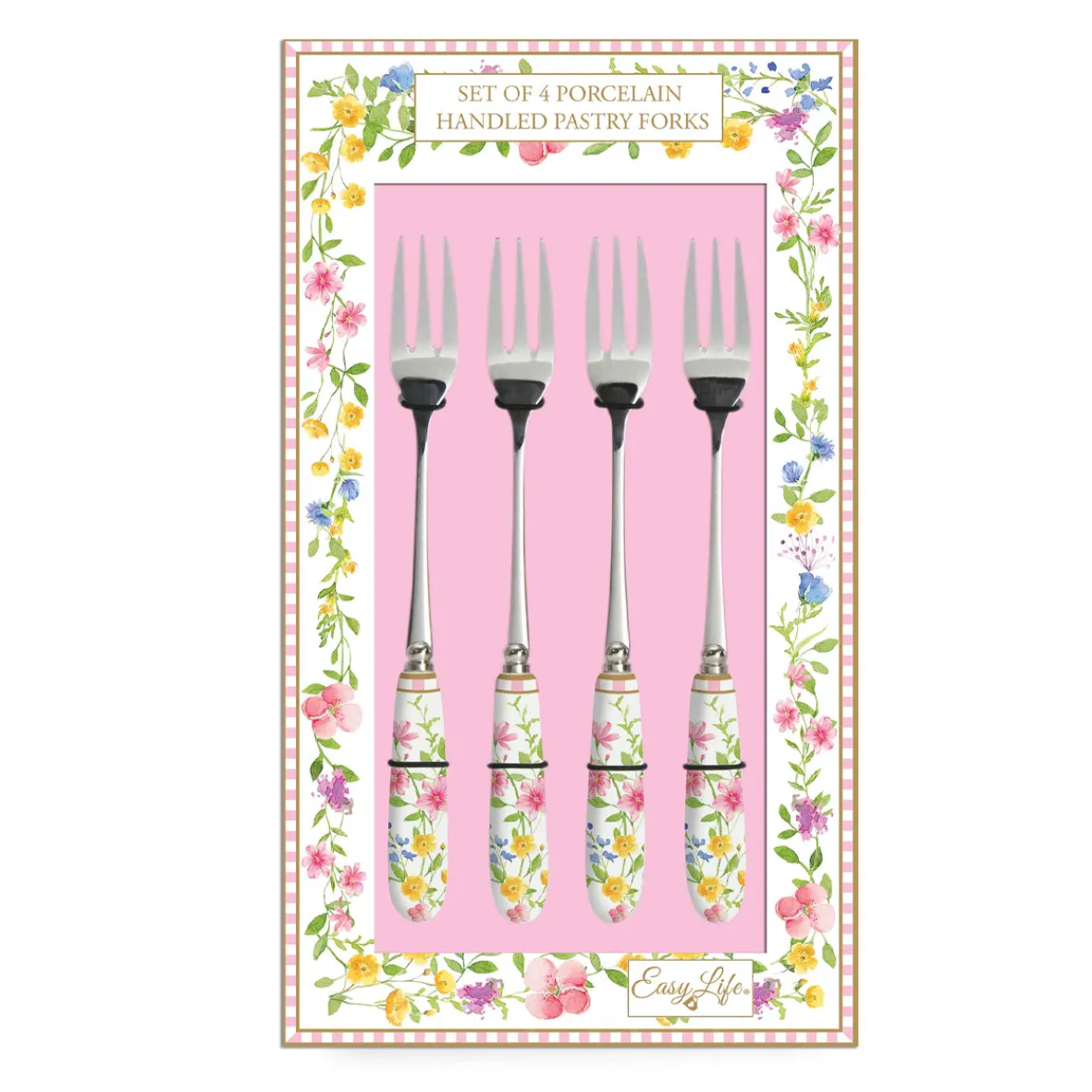 Set 4 fourchettes à dessert avec manche en porcelaine en c.b. HAPPY EASTER