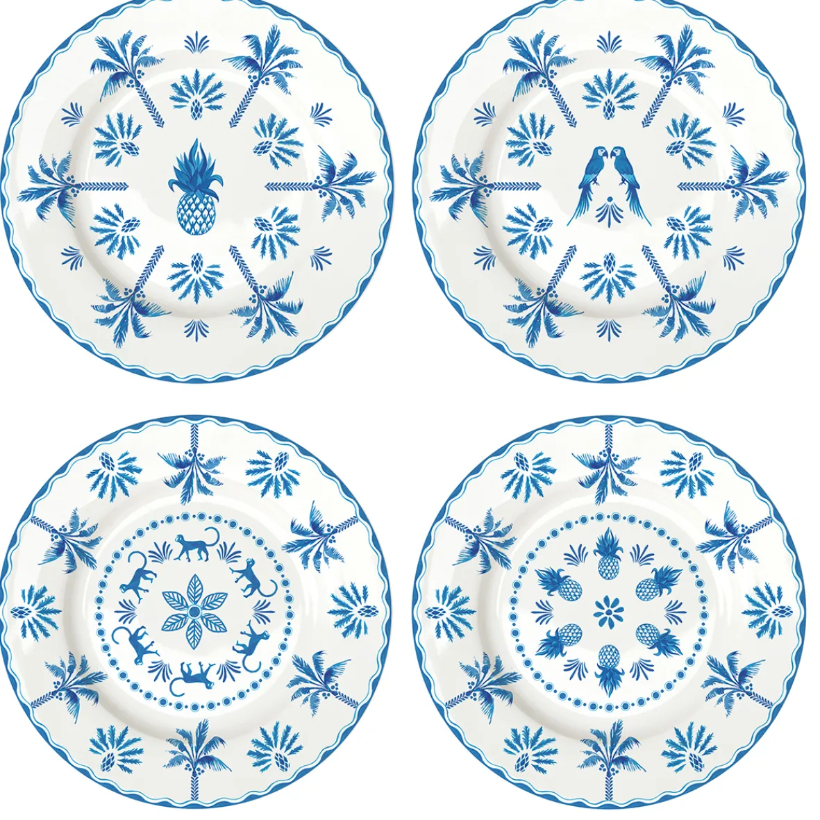 Ce lot d’assiettes à dessert ornées de décors bleus propose des sujets différents mais qui dialoguent parfaitement entre eux. Pratiques et élégants, ils conviennent à de nombreuses occasions.