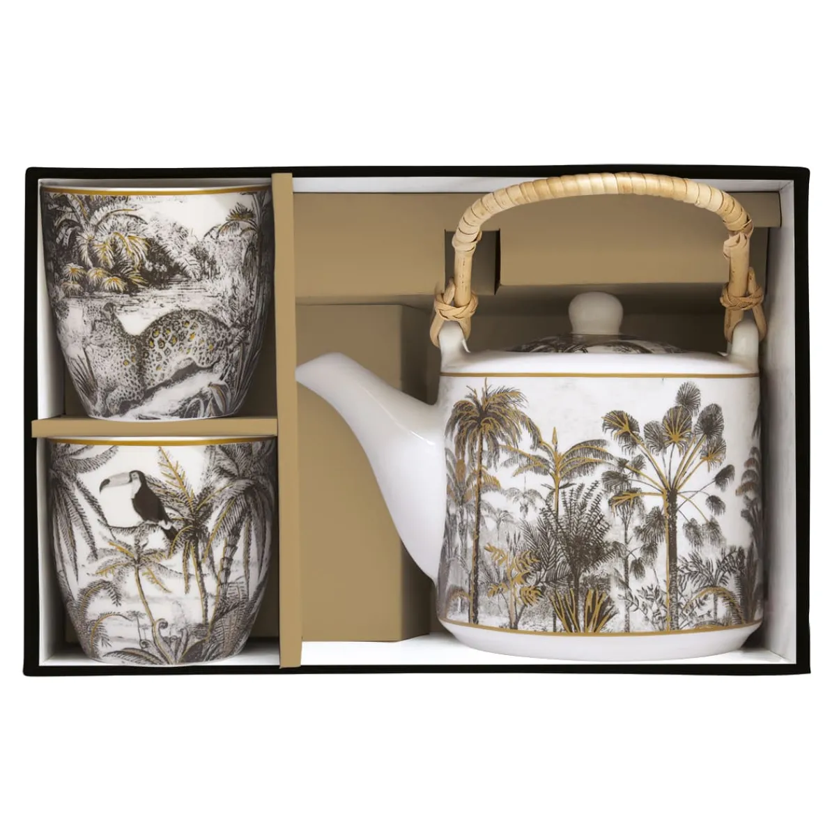 Théière 600 ml avec infuseur en métal et 2 tasses de 160 ml en porcelaine RETRO JUNGLE